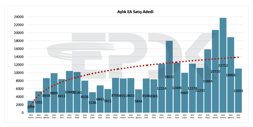 Eylül ayında satışlar 11.053 adet olarak gerçekleşmiştir. Yaz aylarındaki zirveden düşüş yaşansa da satış hacmi yüksek seviyesini korumuştur.