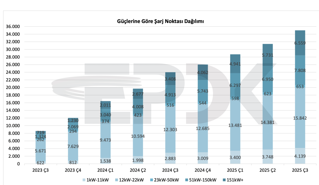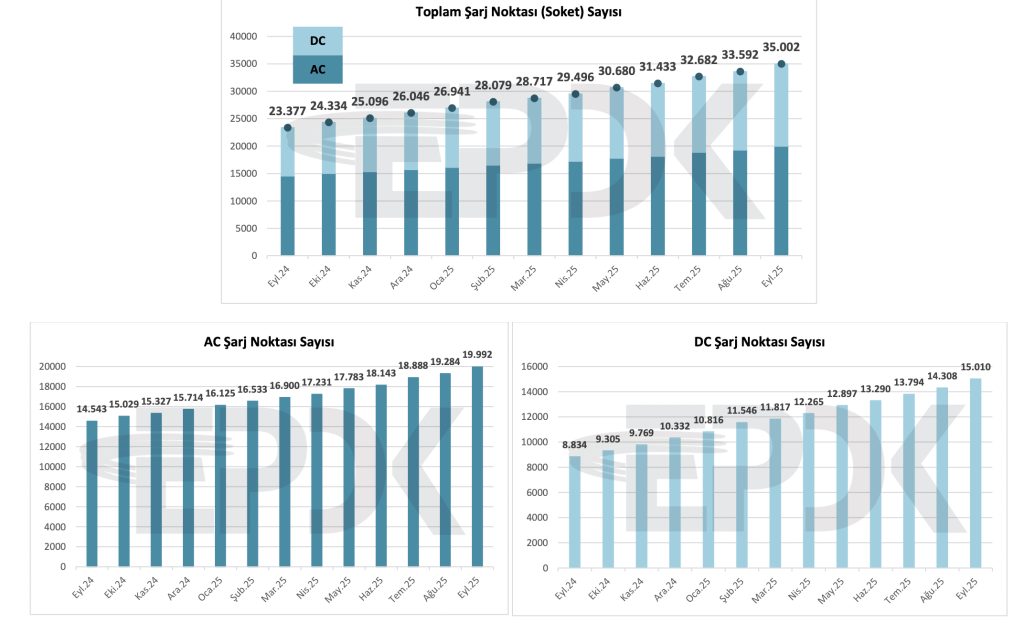 Toplam şarj noktası sayısı 35.002’ye ulaşmıştır. Bu artış, aylık bazda rekor düzeye işaret etmektedir.