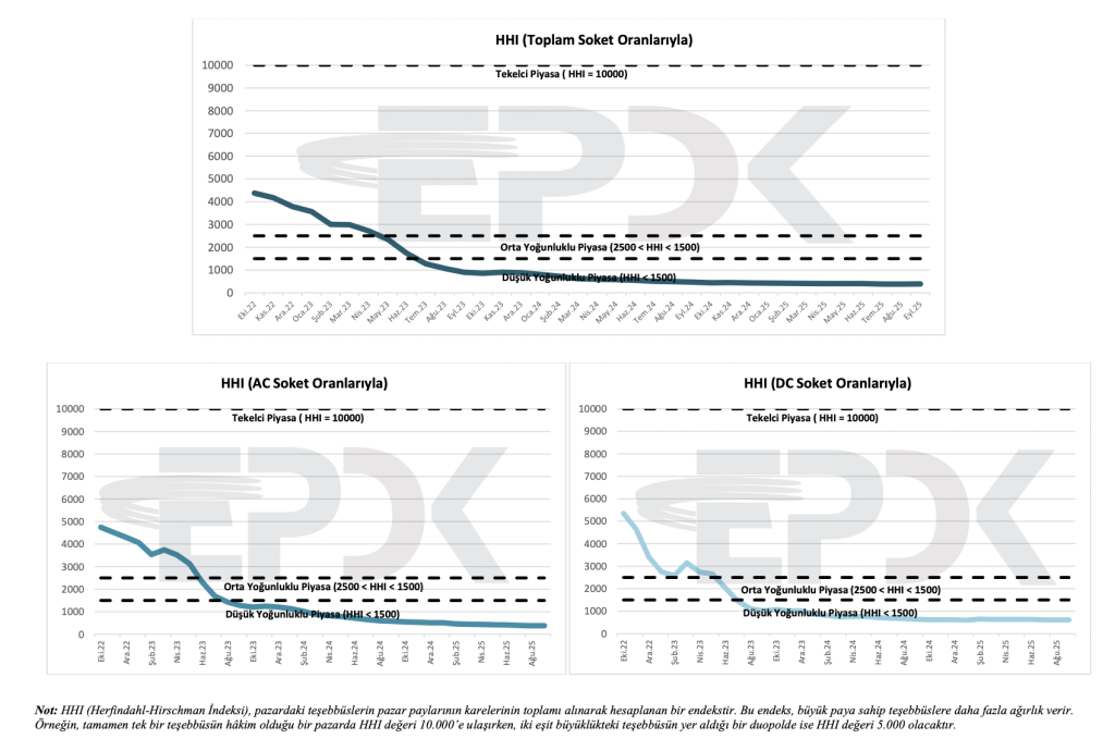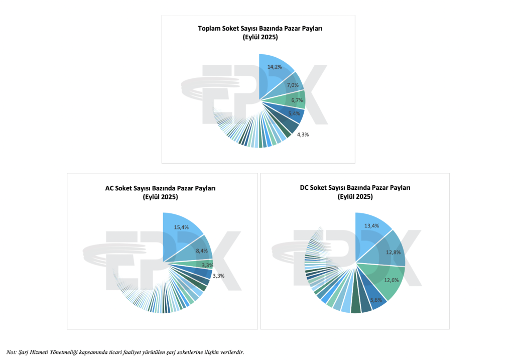 Toplam soket bazında en yüksek pazar payı %14,2 olarak gerçekleşmiştir. DC tarafında rekabet güçlüdür, AC tarafında ise daha parçalı bir yapı mevcuttur.