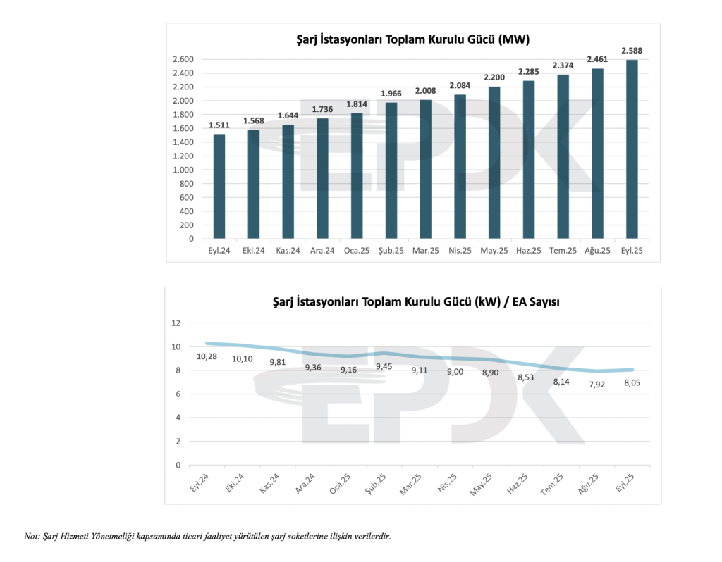 Araç başına düşen ortalama kurulu güç 8,05 kW’a yükselmiştir. Bu artış, altyapı kapasitesindeki iyileşmeyi göstermektedir.