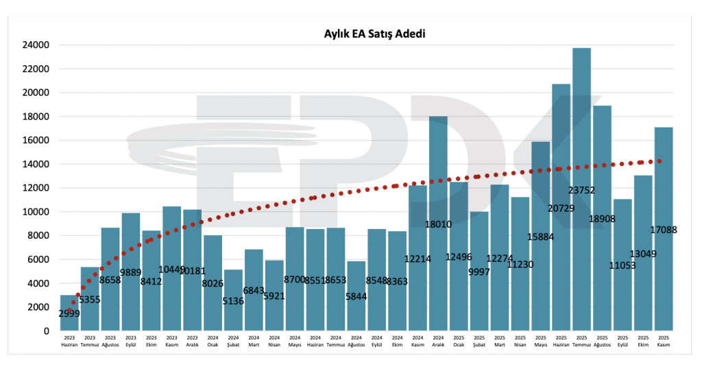 Kasım 2025’te satış adedi 17.088 olarak gerçekleşmiştir. Ekim ayına kıyasla satışlarda yeniden yükseliş görülmektedir.