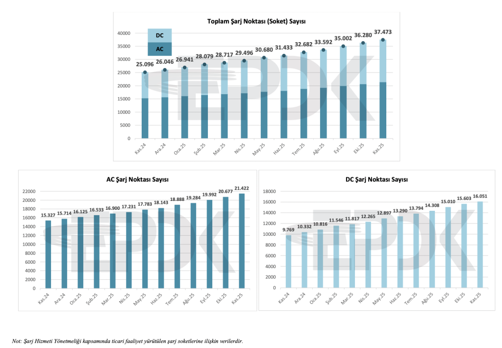 AC soket sayısı 21.422’ye, DC soket sayısı ise 16.051’e yükselmiştir. DC altyapısındaki artış dikkat çekmektedir.