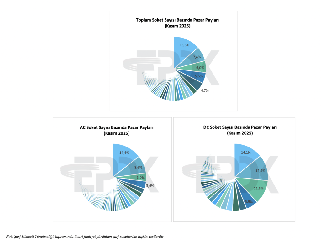 AC soketlerde lider marka %14,4, DC soketlerde ise %14,1 paya sahiptir.