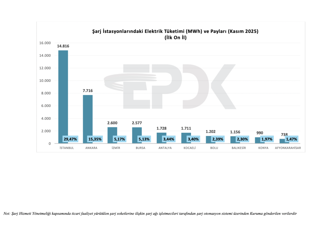 EPDK Kasım 2025 Elektrikli Araç ve Şarj Hizmeti Piyasası İstatistikleri