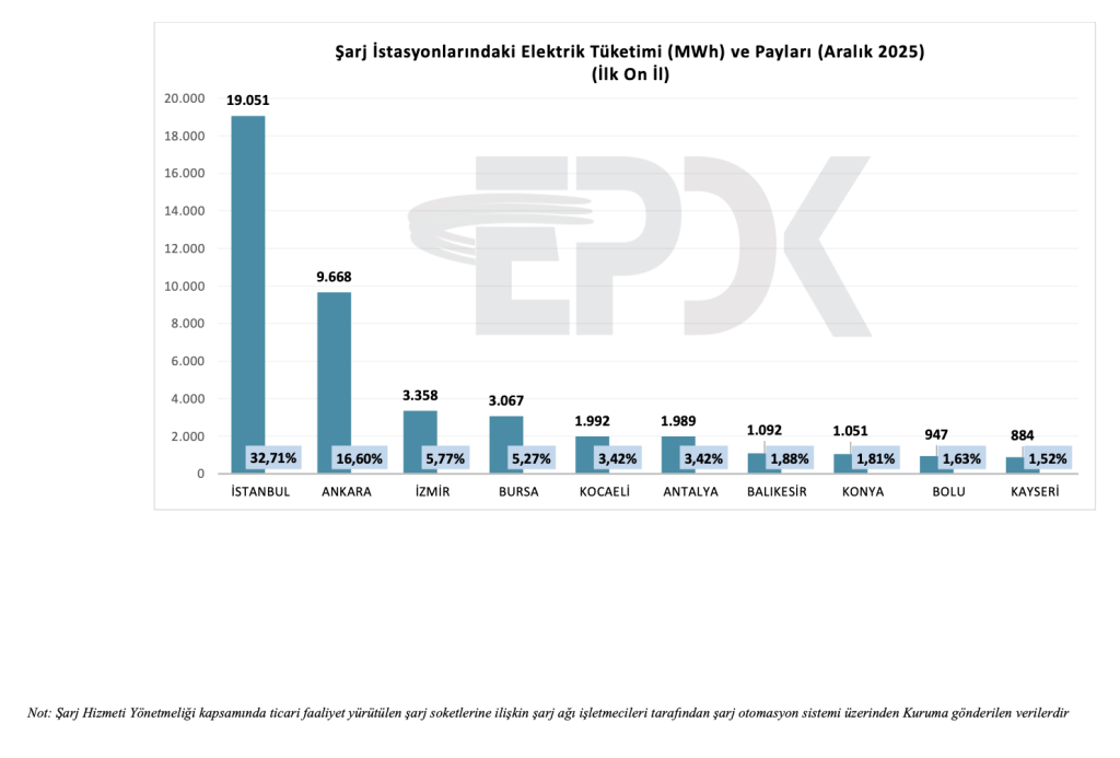 Tüketimin %80,89’i DC istasyonlardan sağlanmıştır.